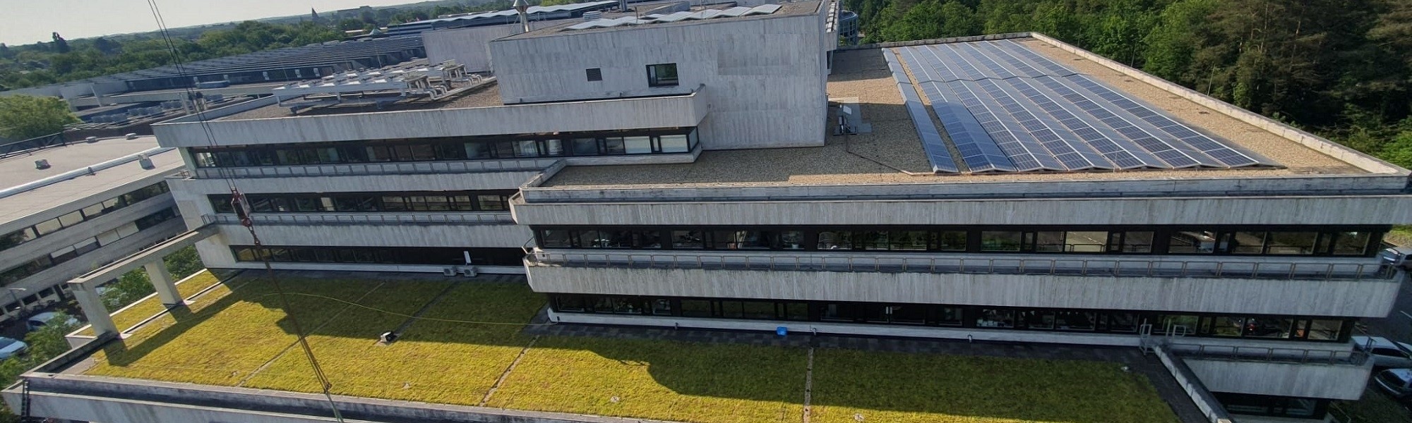 Sedumdak NOS Hilversum, Onlangs zijn twee dakoppervlakken van het NOS-gebouw in Hilversum voorzien van groene daken door Hoveniersbedrijf Green Design For You uit Baarn