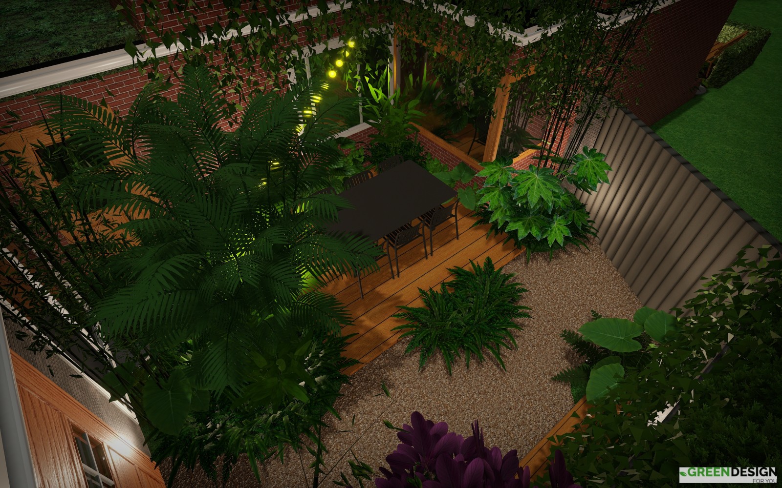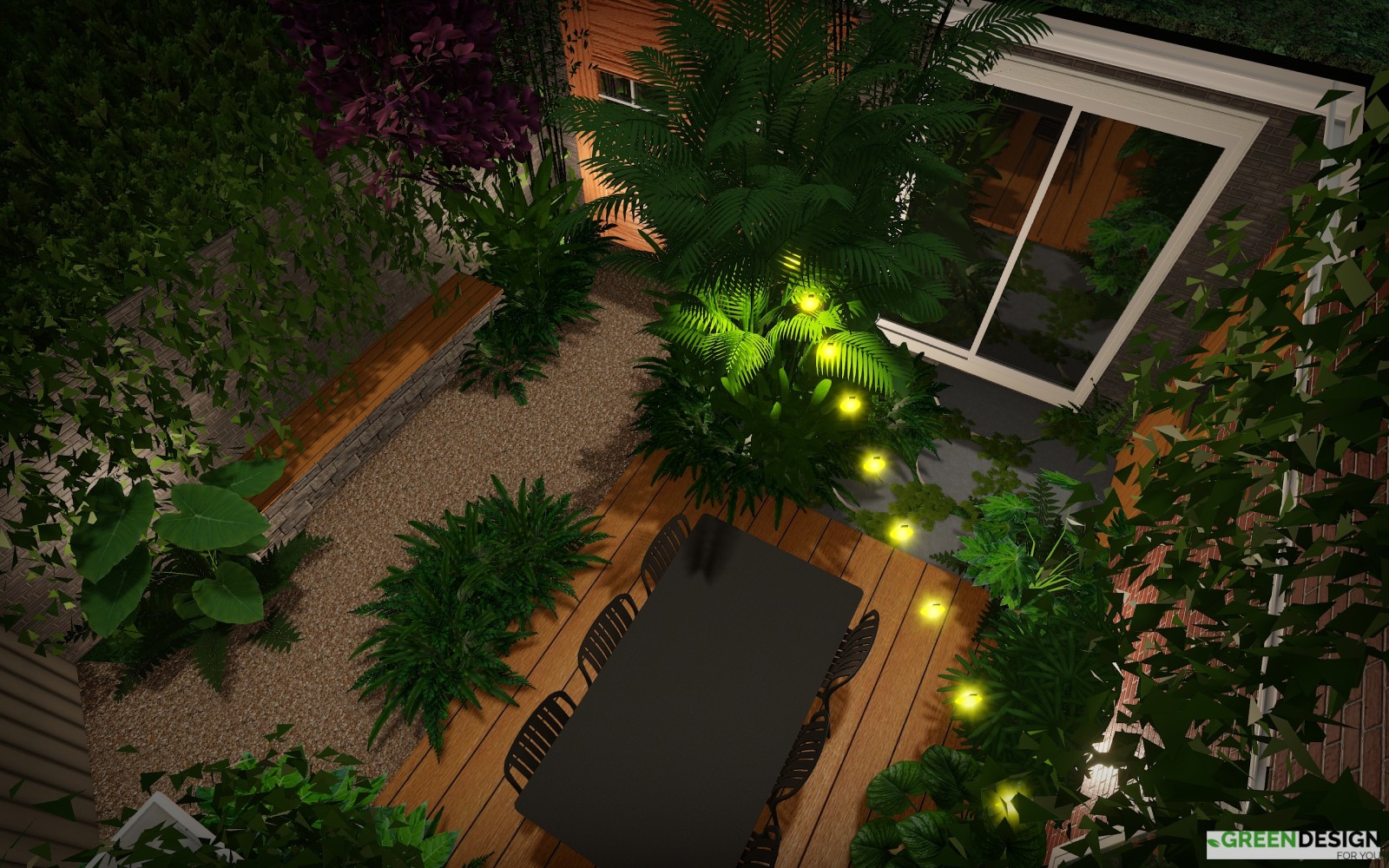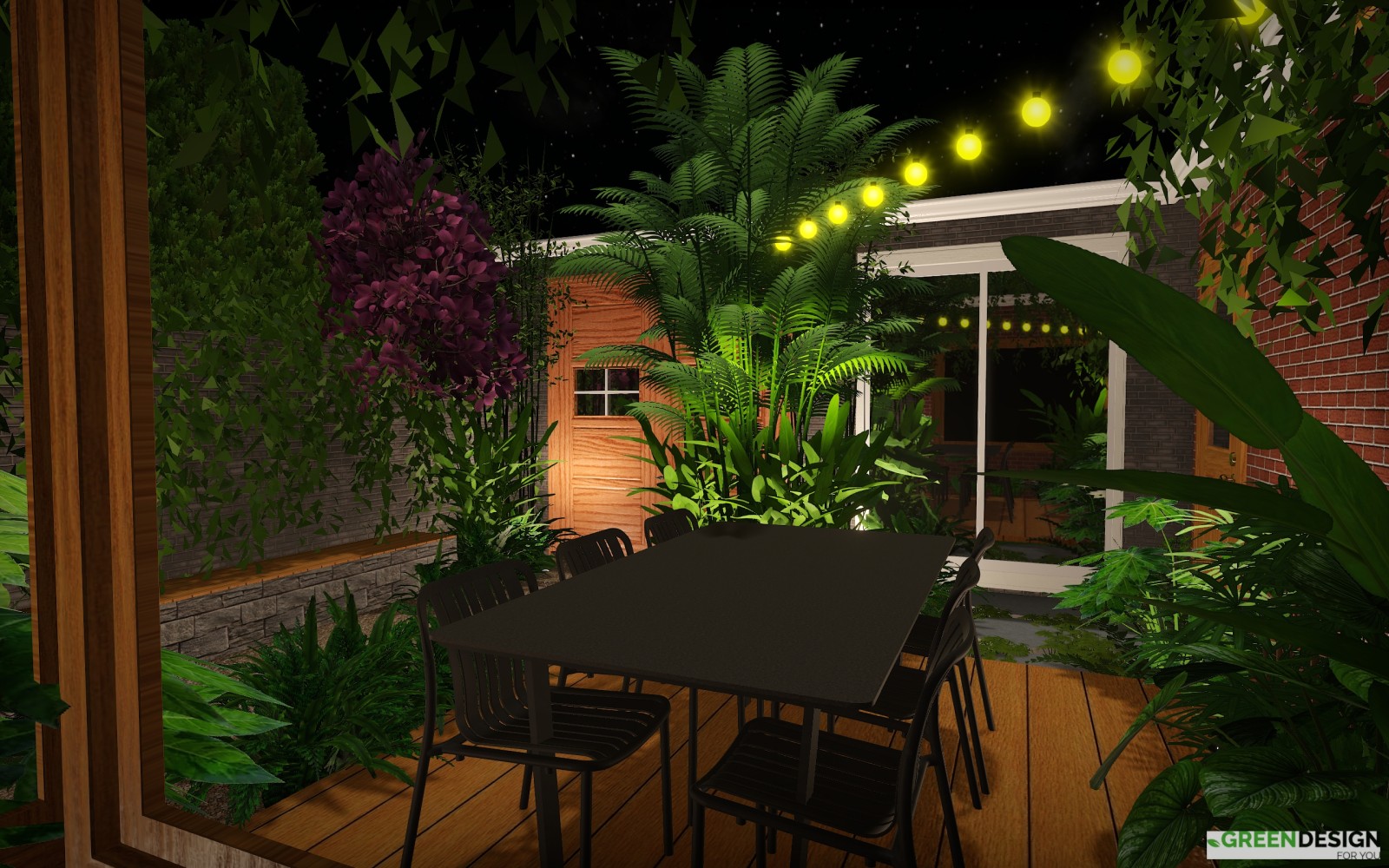 Dit 3D tuinontwerp in Hilversum toont hoe een compacte stadstuin kan transformeren tot een weelderige, besloten groene oase. Door het samenspel van volwassen groen, warme houttinten en sfeervolle verlichting ontstaat een tuin die praktisch, sfeervol en volledig afgestemd is op de wensen van de bewoners. Zo kunnen zij het hele jaar door genieten van een persoonlijke oase midden in de stad.