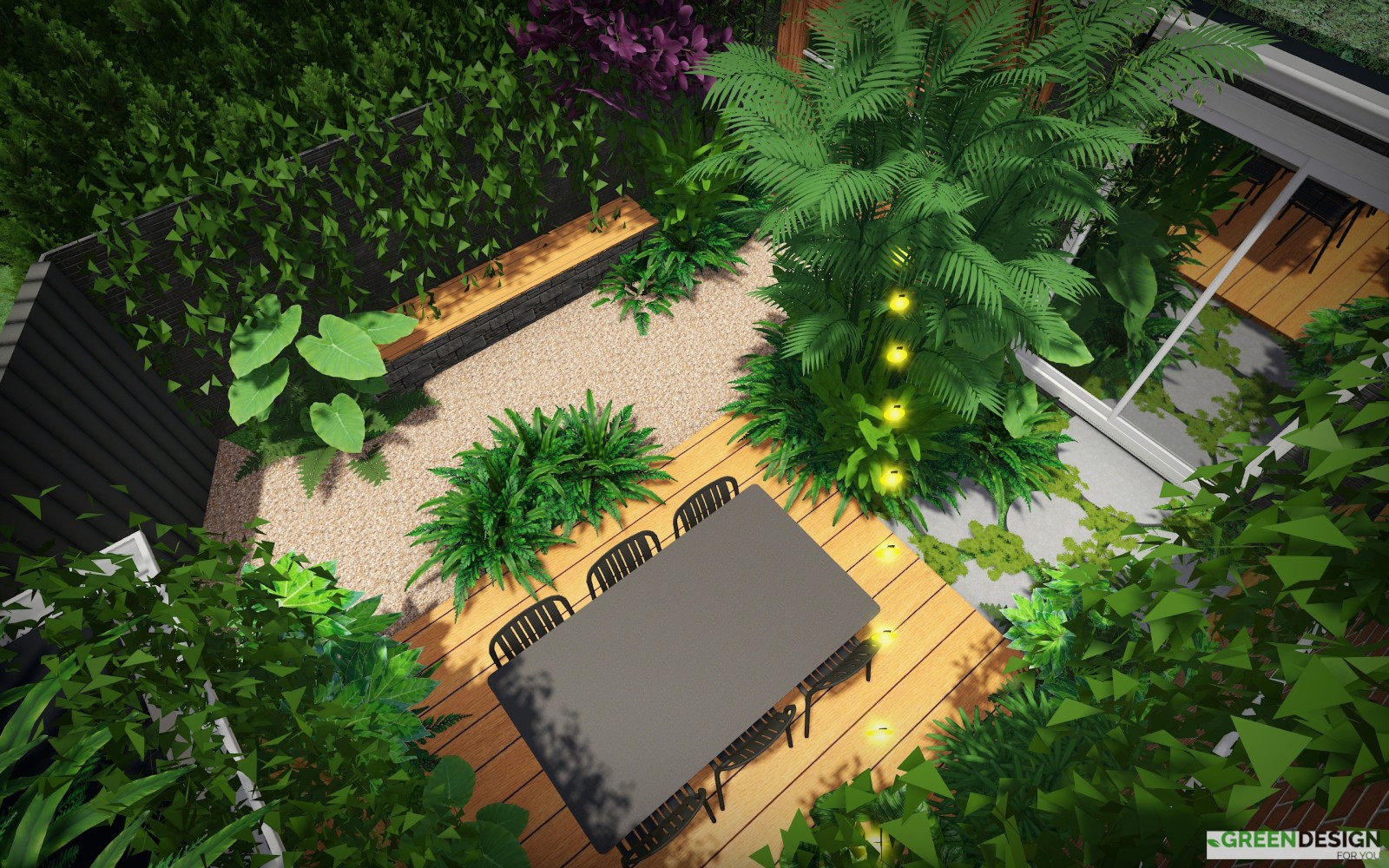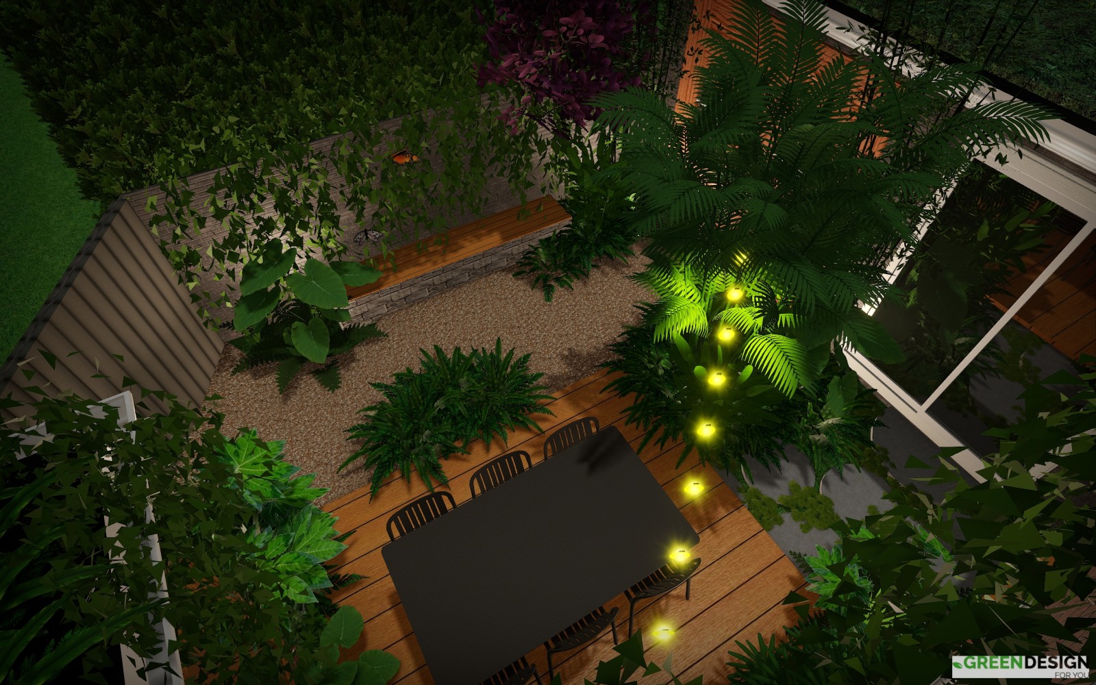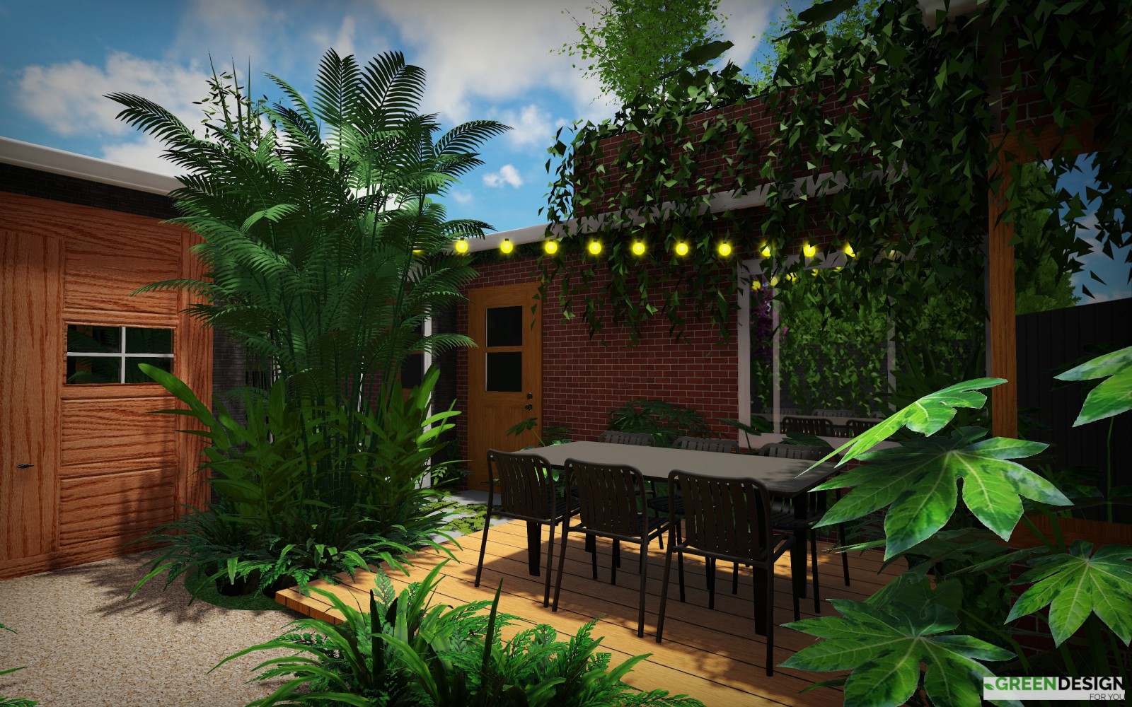 Dit 3D tuinontwerp in Hilversum toont hoe een compacte stadstuin kan transformeren tot een weelderige, besloten groene oase. Door het samenspel van volwassen groen, warme houttinten en sfeervolle verlichting ontstaat een tuin die praktisch, sfeervol en volledig afgestemd is op de wensen van de bewoners. Zo kunnen zij het hele jaar door genieten van een persoonlijke oase midden in de stad.