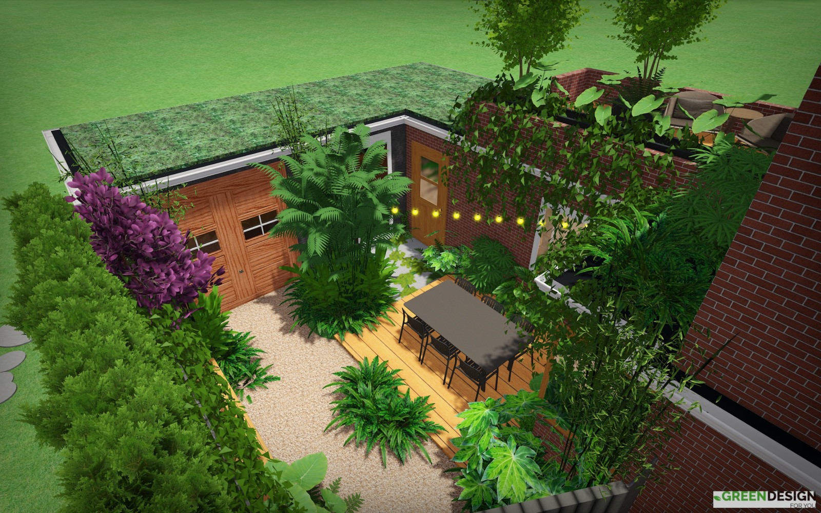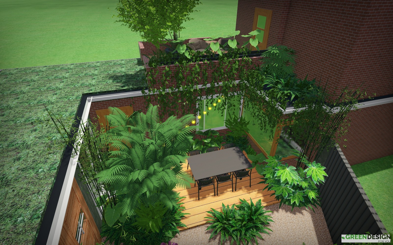 Jungle tuin in Hilversum – compacte groene oase met vlonder en zitjes