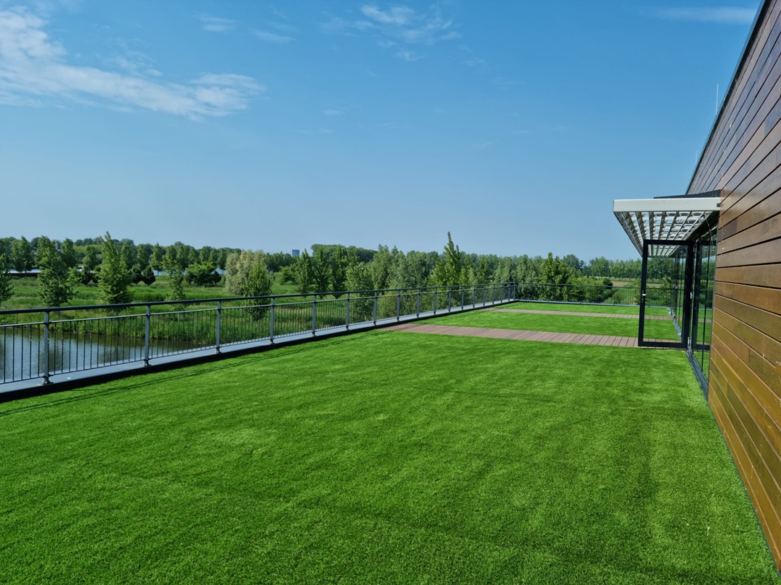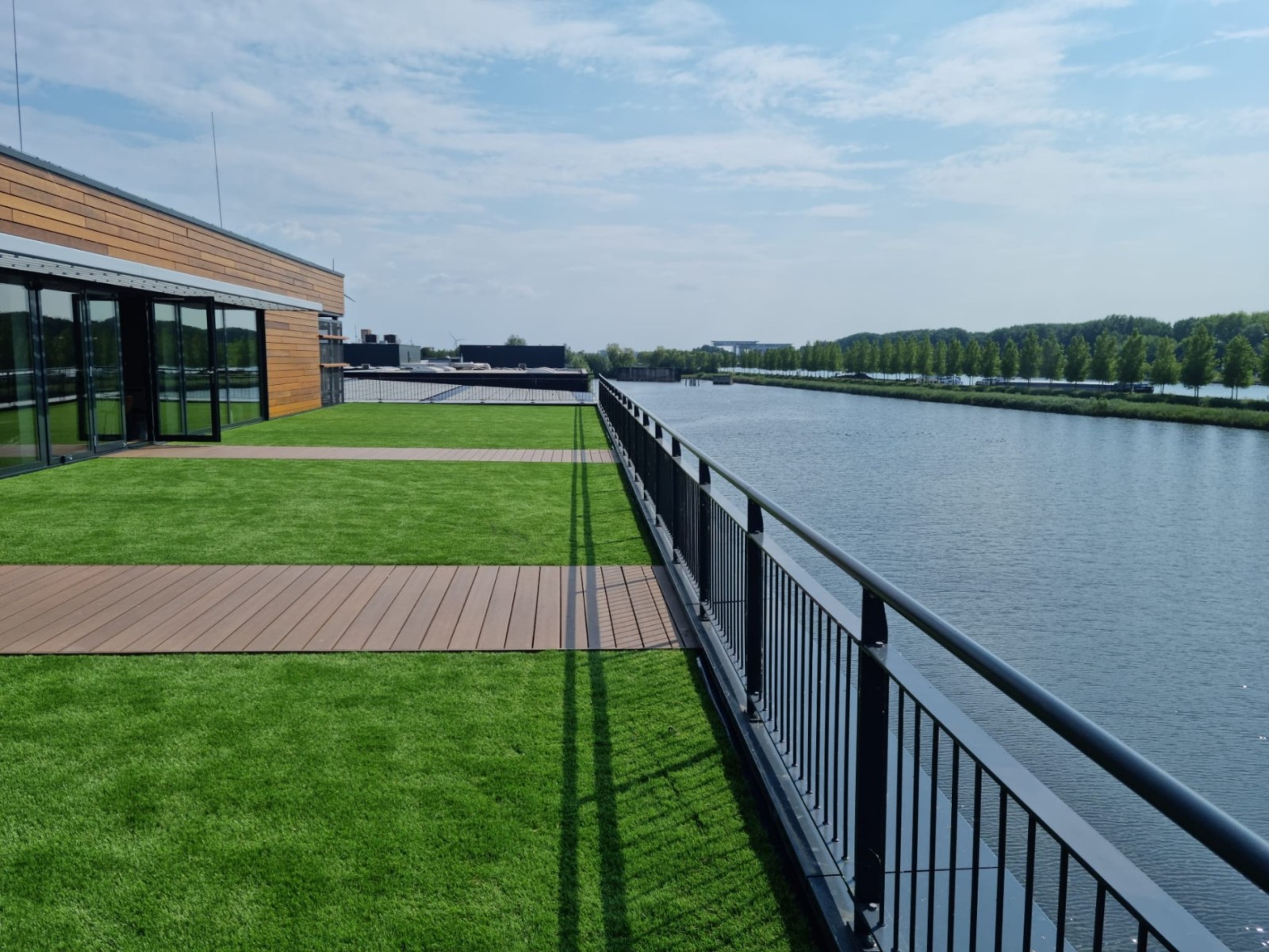 Als invulling en groene uitstraling is er gekozen voor kunstgras. Hufterproof en hoogpolig voor een comfortabel gevoel.