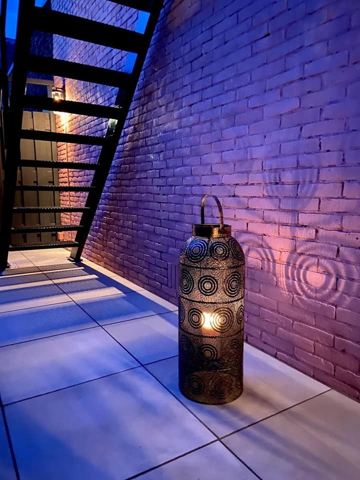 Marrakesh. De favoriete vakantiestad van de gebruiker van deze Marokkaanse tuin in Hilversum. De tuin moest het gevoel van warmte en vakantie krijgen. Mediterrane beplanting, zandkleurige tegels, terracotta gekleurde muren, romantiek, waterornament en verlichting. De tuin mocht het allemaal krijgen.
