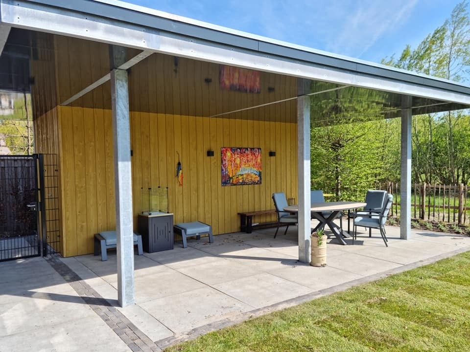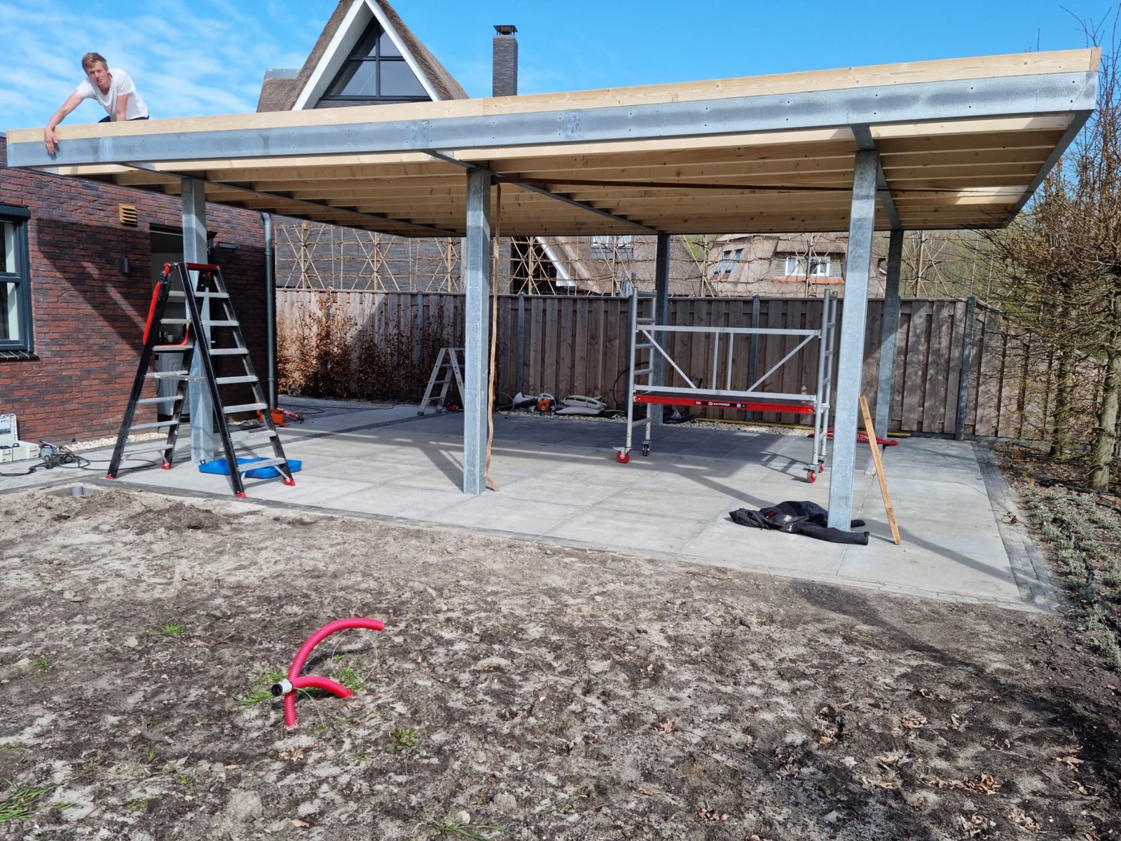 Voor deze overkapping en berging van 9x7 meter is een heldere visie bedacht. Namelijk : Het multifunctioneel maken voor gebruikersdoeleinde als bergen, zitten, beleven en ombouwmogelijkheden tot mantelzorg woning.