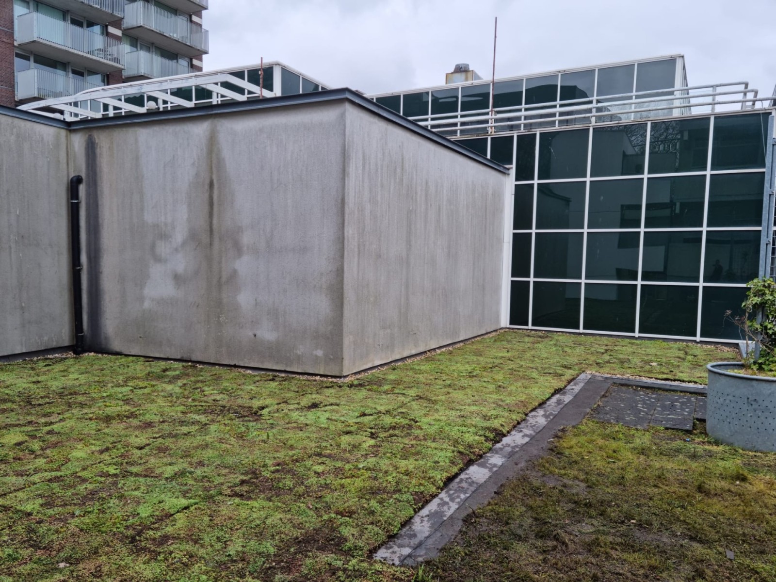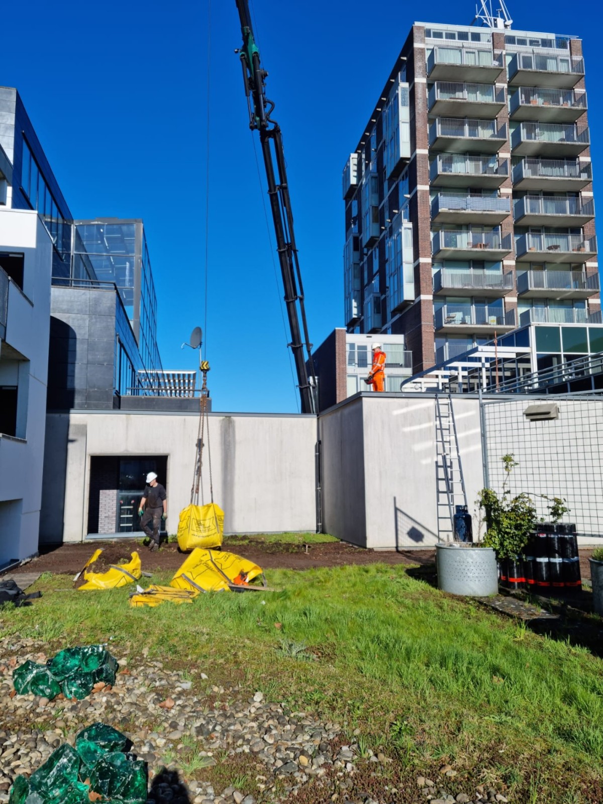 Na de dakrenovatie was het wenselijk opnieuw een sedumdak aan te leggen. Deze werkzaamheden hebben we met behulp van een autolaadkraan, verkeersregelaars, en vergunning uitgevoerd in winkelcentrum Stadshart te Amstelveen.
