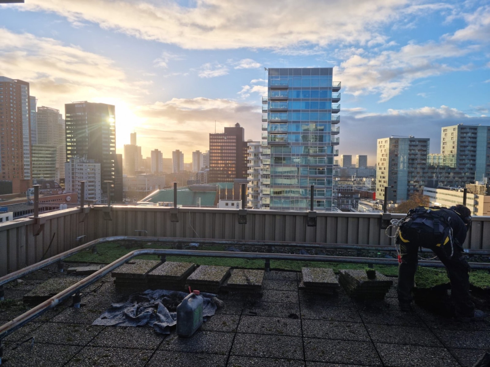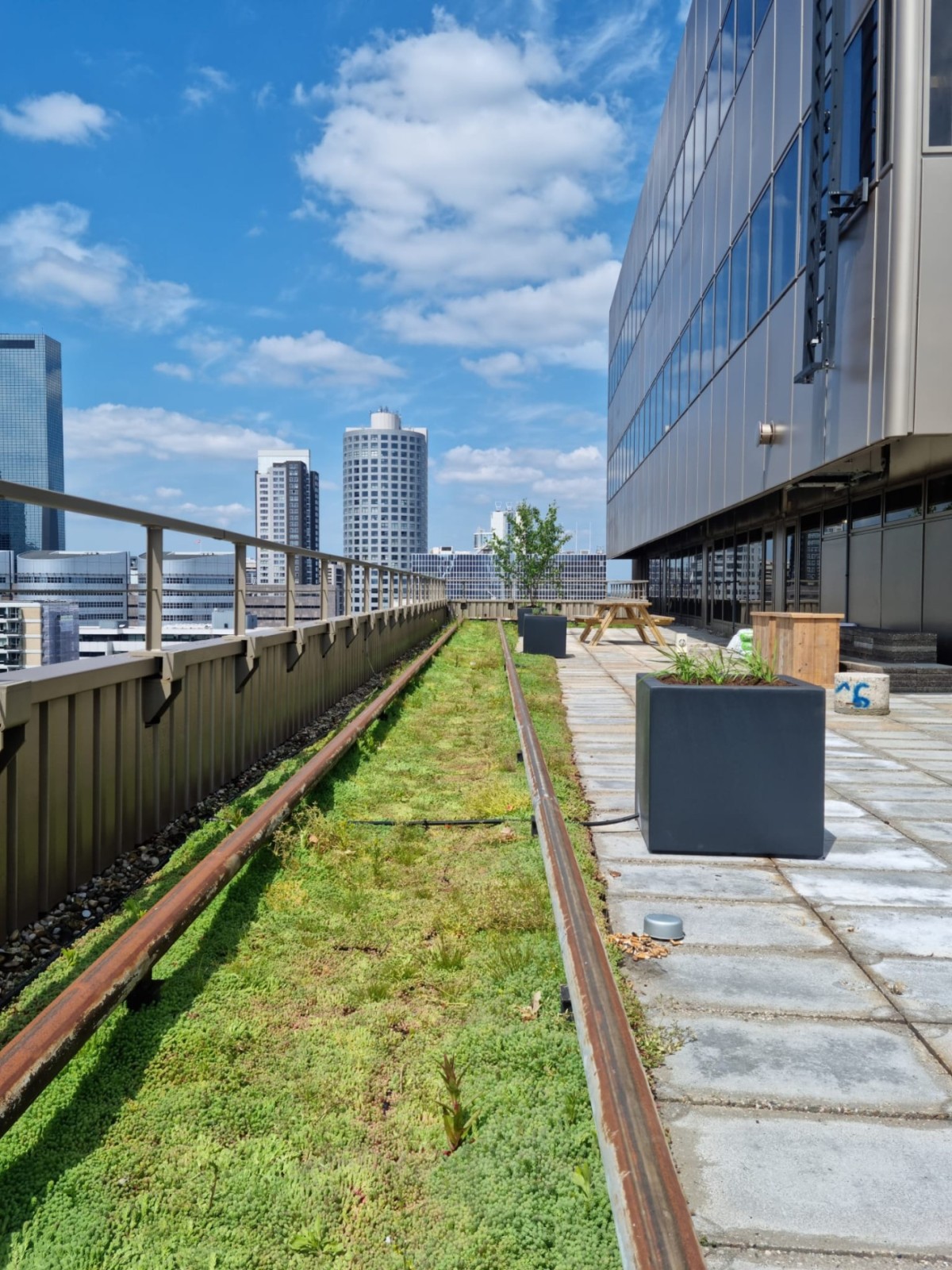 Sedumdak Rotterdam, Microlab Rotterdam ging voor groen op de 11e etage met een spectaculair uitzicht.