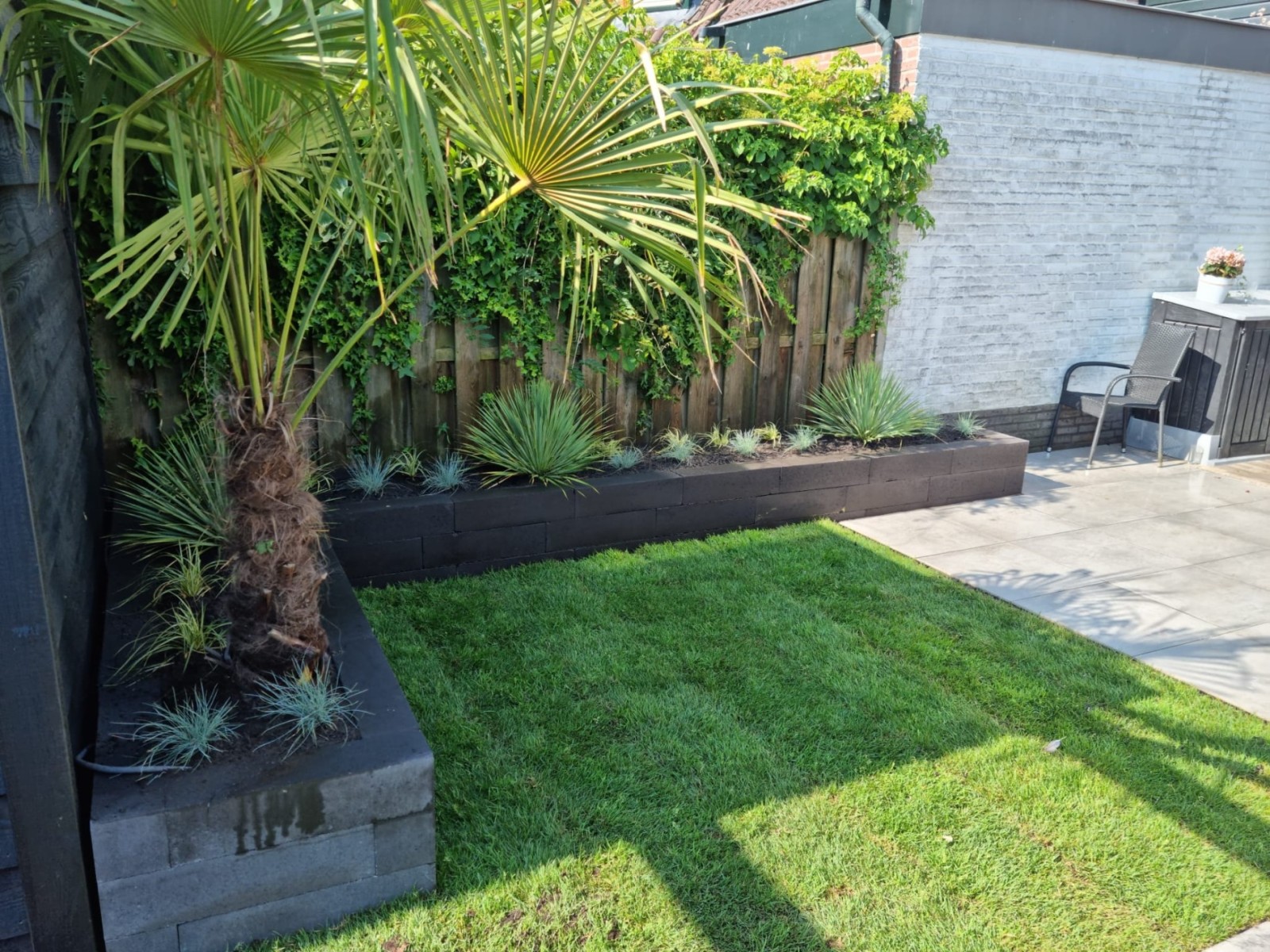 Samen met de afwisseling in materialen maakt de beplanting de sfeer van deze tuin. We hebben gekozen voor grote mediterrane beplanting, die zich goed zullen gedijen in deze tuin op het zuiden. Tegen de pergola is er gekozen voor klimbeplanting om het aanzicht tegen het hout wat te verzachten en hierdoor kleur in de tuin te brengen.