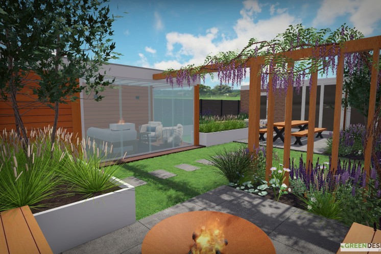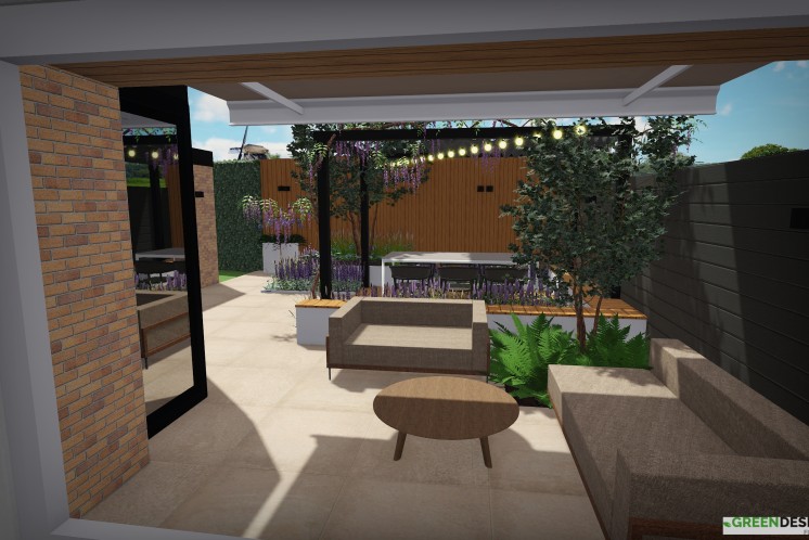 Lees verder 3D tuinontwerp - Strakke tuin Zeewolde